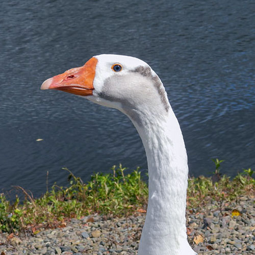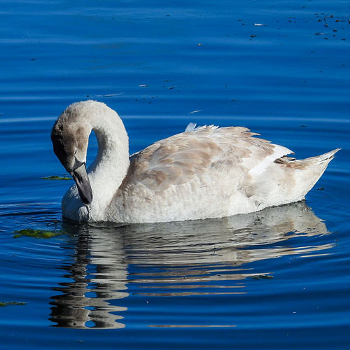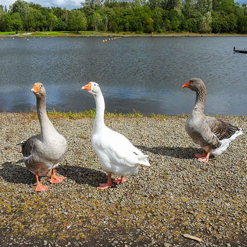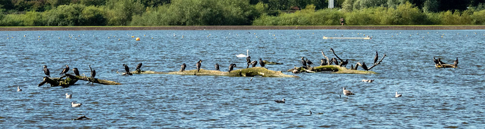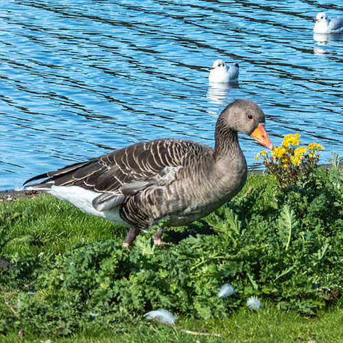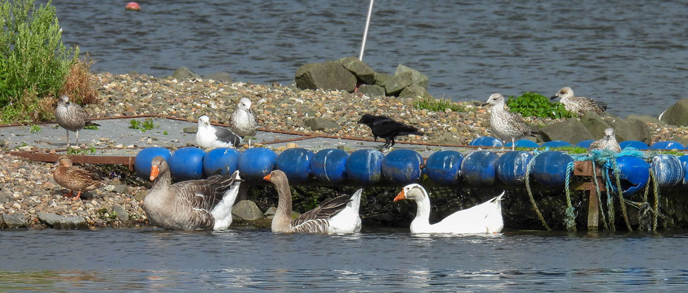 I popped over to the Watersports Centre and got a snap of a diving Cormorant. I walked over to the Beach car park where there were a number of birds on the beach: Mallards, white Embden Geese, Greylags and Mute Swans. These were not unexpected, but what I didn’t expect to see on