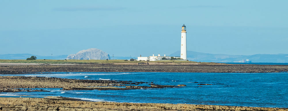 Looking west from Chapel Point I could see Barns Ness lighthouse (the next location I visited). Note the Bass Rock in the distance.
