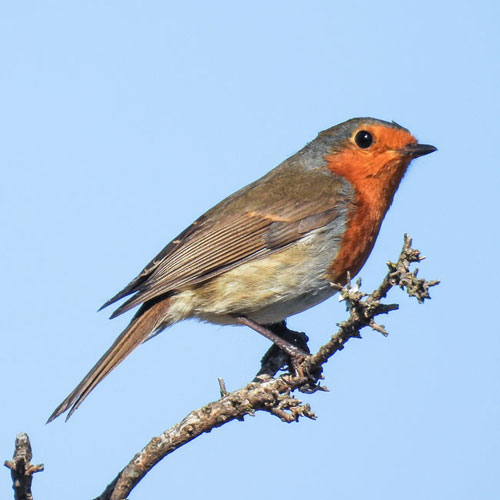 Like in Skateraw, the shore was a mass of bare rock, and once again there were no sea birds. However the wee birds came to the rescue. First, a Robin sat on a Gorse branch and started singing. Soon after that a juvenile Dunnock appeared near the Robin and just looked down on me.