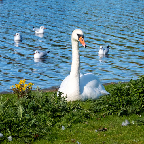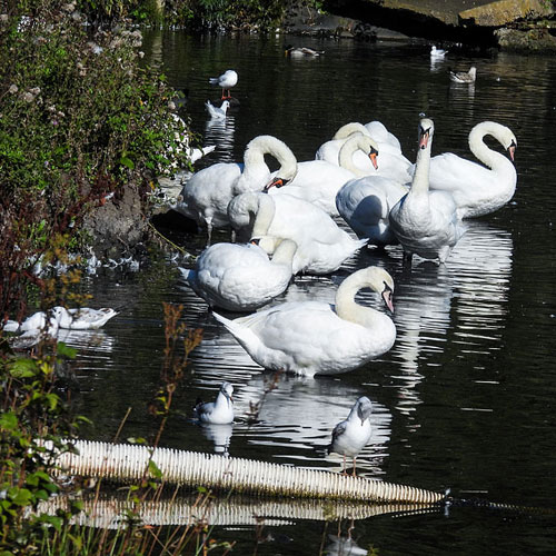 Glasgow. As usual, there was a sizeable flock of Mute Swans loitering