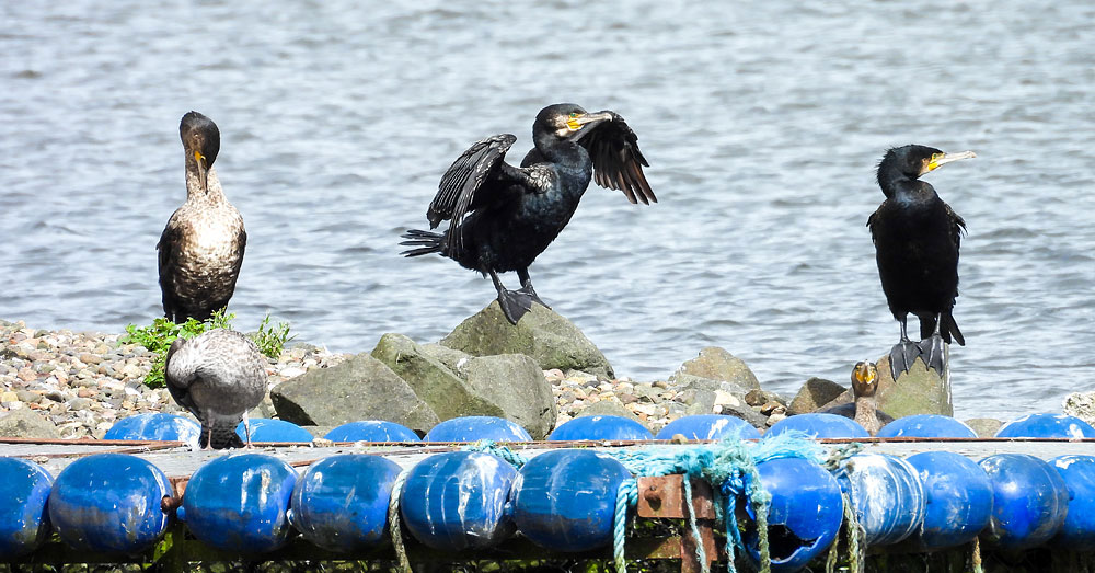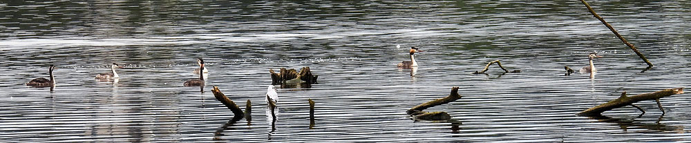Near the Foreshore car park I witnessed a gathering of five Great Crested Grebes. I presume they were a couple of families, as so could these