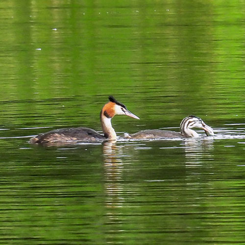 At the next gap in the trees I spotted another adult Great Crested Grebe feeding its chick. Although they were in the middle of the loch I got some OK record shots.