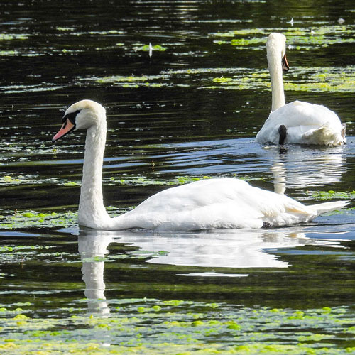 hiding in the grassy banks. A few Mute Swans were parading around the