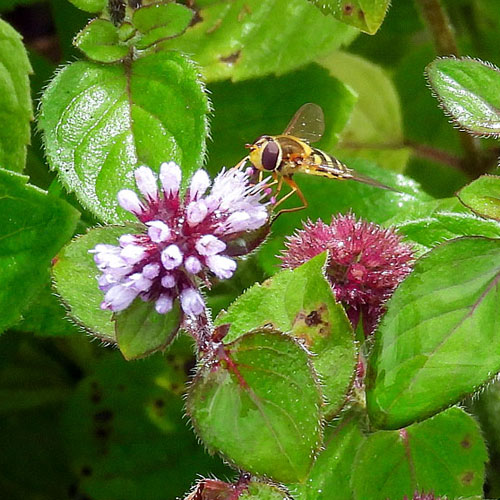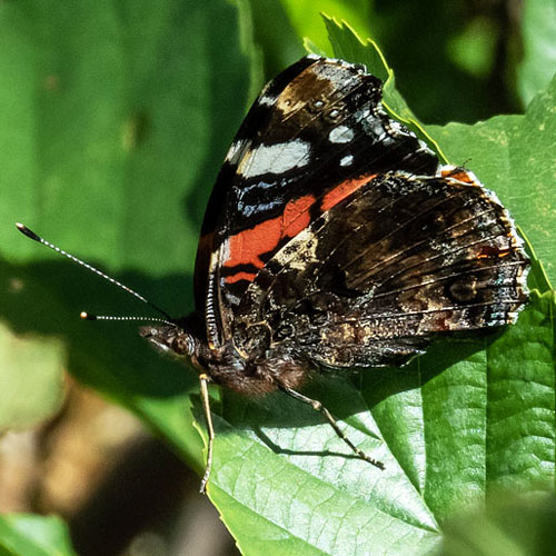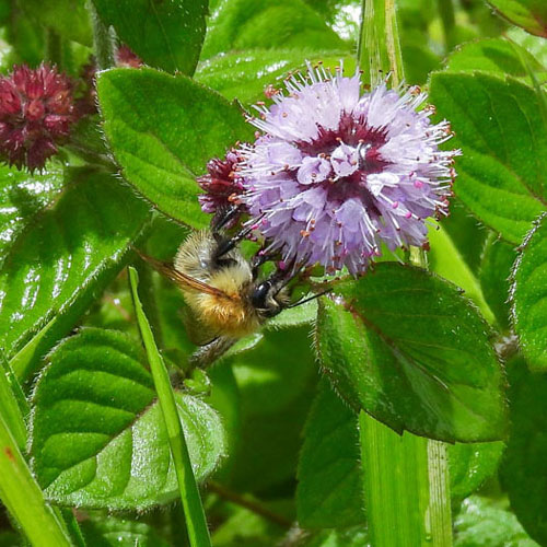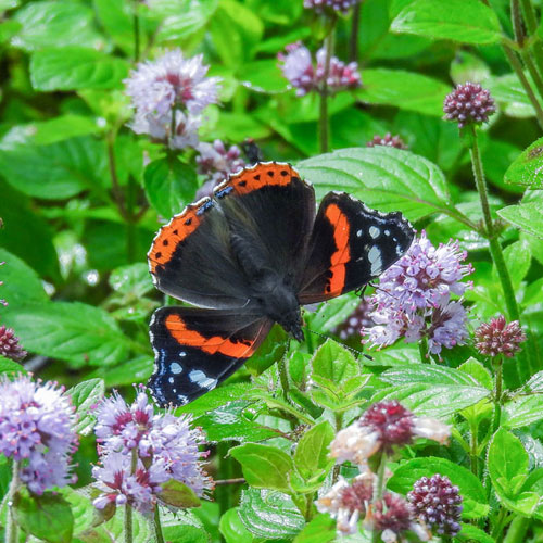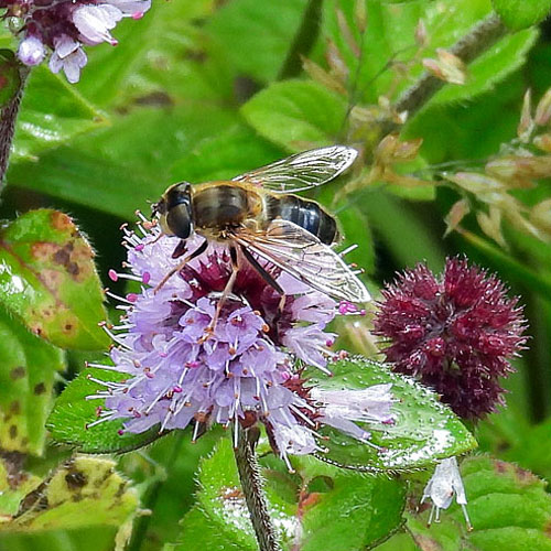 As I passed over the dam at the north end of the loch, there was a large Lesser Blackbacked Gull standing on the railings around the sluice gate. Another cloudburst held me up as I approached the west side of the loch, but when it stopped I watched a lovely wee Robin singing it’s heart out. There was a disappointing lack of water birds along the west side of the loch, but when I reached the final stretch of path that leads back to the car park, I stopped at a wide patch of flowering Water Mint where Droneflies, (eg Eristalis arbustorum), Hoverflies (eg Syrphus ribesii) and Carder Bees were on the pretty spherical flowers. My final photos at Broadwood were of a gorgeous Red Admiral that landed on another patch of Water Mint by a small wooden footbridge.