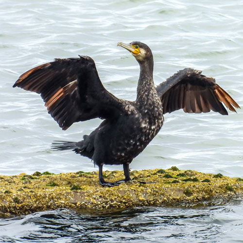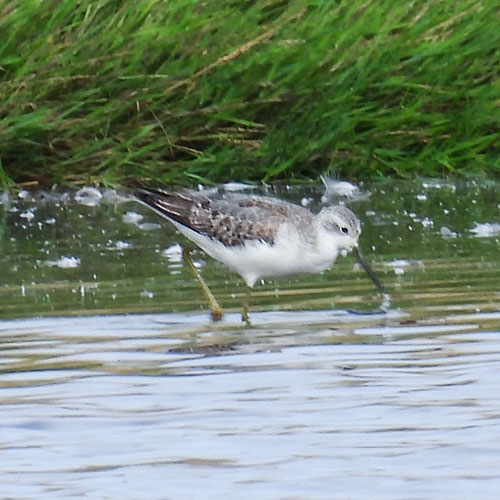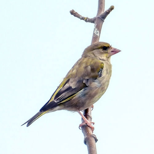 The reason I was in Musselburgh was due to a report I’d read in X, posted by @birdinglothian, that there was a Marsh Sandpiper and a few Curlew Sandpipers on the Morrison’s Haven scrapes. Well, to be honest, I was unaware of that scrape and had to search for it when I first arrived. My plan was to park at the Levenhall Links car park and walk the short distance east along the coastal path to Morrisons Haven, hoping the scrape would be obvious. From that path I saw a Goosander diving offshore. Also, a Curlew and a juvenile Cormorant were on the shore, as were a few Turnstones. Just before the Morrison’s Haven car park I was delighted to see a large Grey Seal basking close to the seawall. As I photographed the seal I heard a Greenfinch calling from a bush behind me. It was a juvenile.