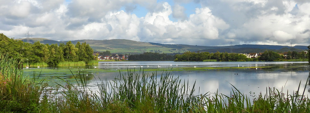 Below is a view of Broadwood Loch as seen from the southern tip looking north towards the Kilsyth Hills (which is the eastern side of the more extensive Campsie Hills).