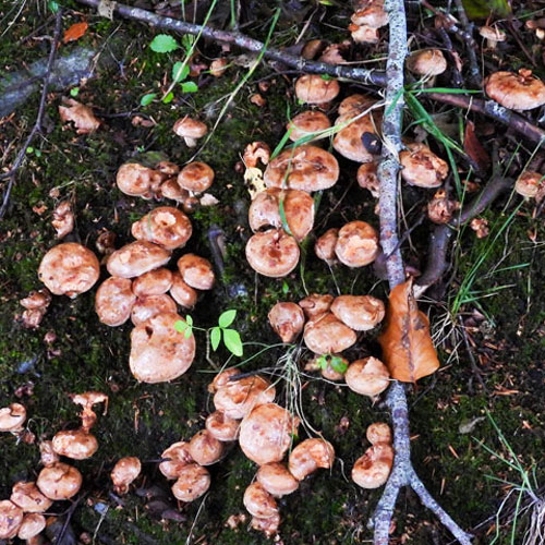Loosestrife in the foreground. The final shot below was actually taken in my garden. I believe it it is most likely an Orange Milkcap. They sprouted in a tub of Hydrangeas, to which some bagged compost has recently been added.