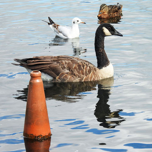 Canada Goose mingling with the swans. My final shot at Hogganfield was