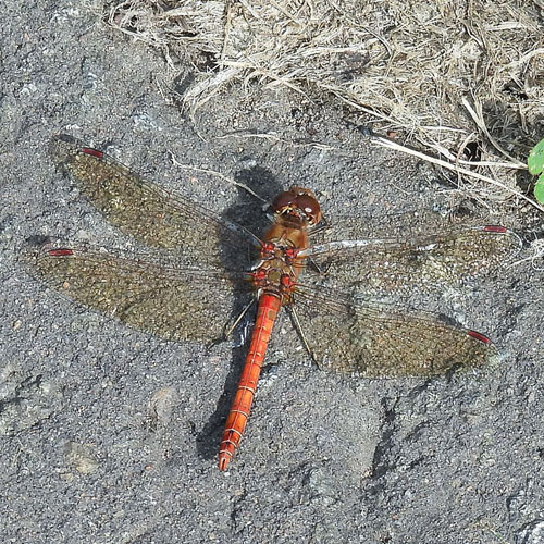 As I photographed the Giant Polypore I could hear a Robin singing, and after a brief search I located it on a branch a few metres above me. The woodland path eventually took me to the Clyde Walkway on the banks of the River Clyde, at an area called Adder’s Gill. There are sparse remains of brickwork which I think was a pumping station. I found an Ivy-leaved Toadflax plant growing on the bricks. Next I decided to walk west along the Clyde Walkway to get to the RSPB Baron’s Haugh reserve and encountered a couple of butterflies on the way: a Green-veined White and a Large White.