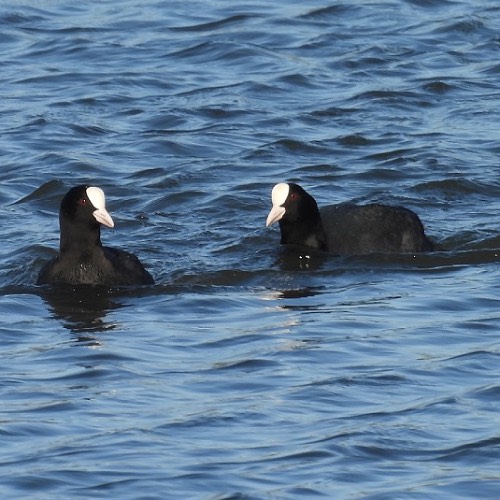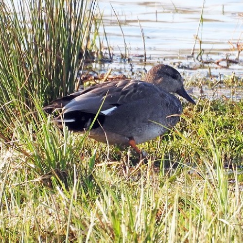 I spotted a pair of Gadwalls far to the left of the scrape and, near to them, a Coot. I also