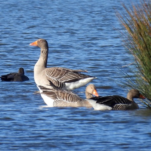 photographed a trio of Greylag Geese that were preening the far-left edge of the scrape