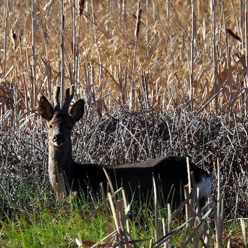 From the access path into the hide I spotted two Roebucks grazing on the wild grassland