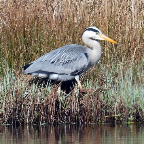 ….. where I was pleased to see a Grey Heron prowling along the edge of the pool. At the back of