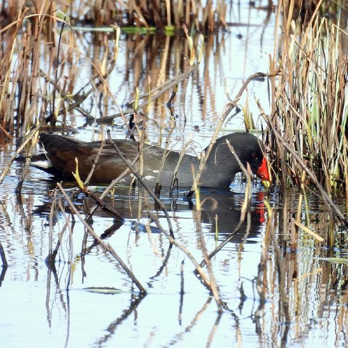 A bit further from the hide were Goosanders, Moorhens and a drake Shoveler