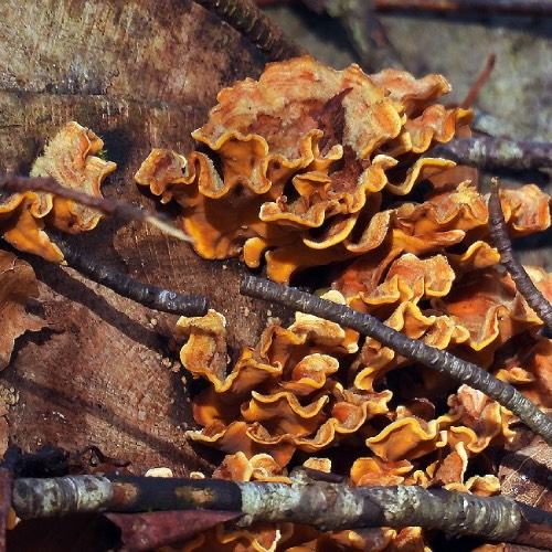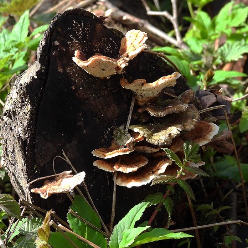 growing on a decaying tree trunk, half-hidden by surrounding vegetation. I also found a few