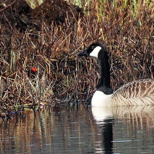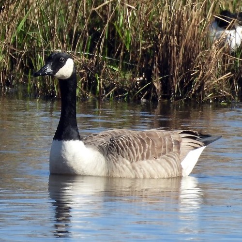 the hide. At the rear, Bulrush-lined edge of the haugh, a Canada Goose stood proudly in the
