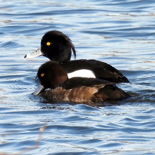 felled tree trunk. There were ducks on the water: a Mallard and a pair of Tufted Ducks.