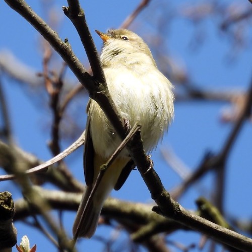 branches and, on inspection of my pictures, I concluded that they were mainly Willow Warblers and at least one Chiffchaff (also confirmed by hearing each of their distinctive bird