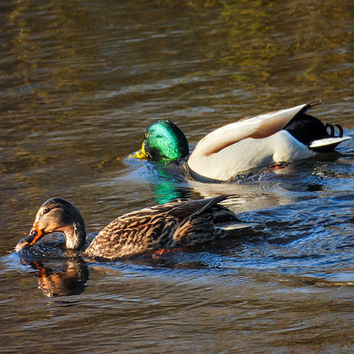 A pair of Mallards were having a great time diving near the breach in the bund that connects the