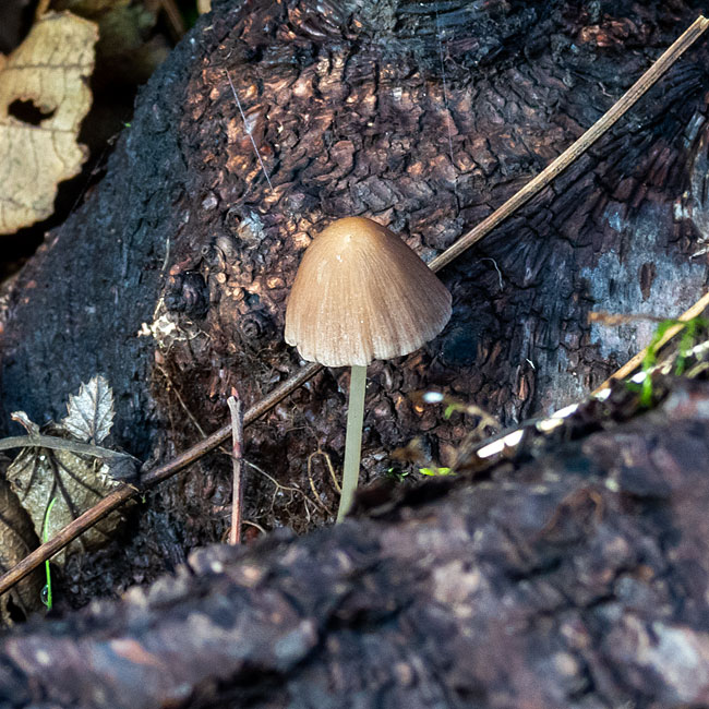 Among leaf litter beneath deciduous broadleaf trees, notably Beeches, and often along roadside verges.