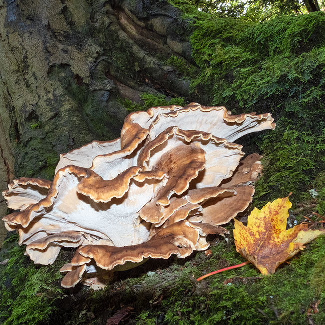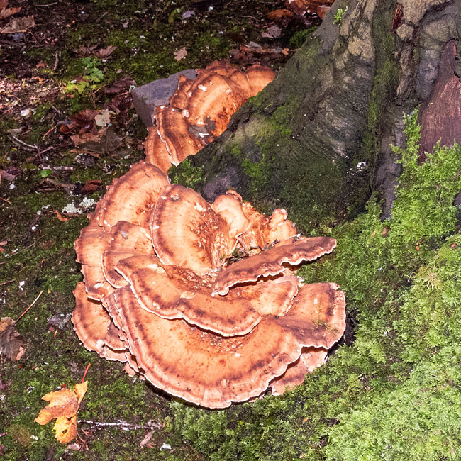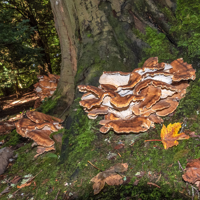Appears on stumps and at the base of some living broadleaf trees - most notably beech.
