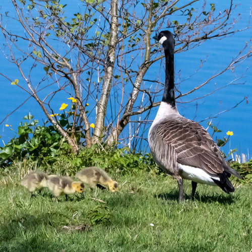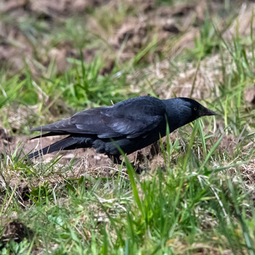 were sitting on the grassy banks. A Jackdaw was preening atop a large