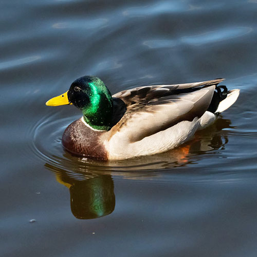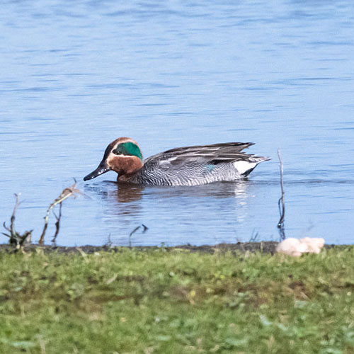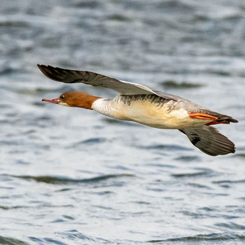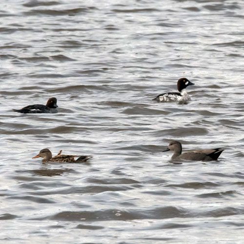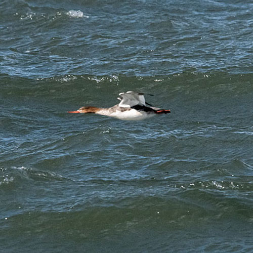 sheltering on the waters at the harbour mouth. A Red-breasted Merganser