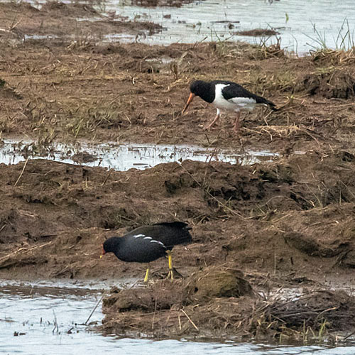 Oystercatchers, a Curlew and Redshanks - unfortunately all on the most