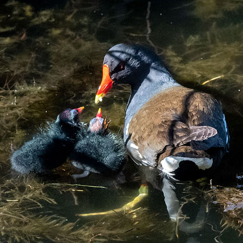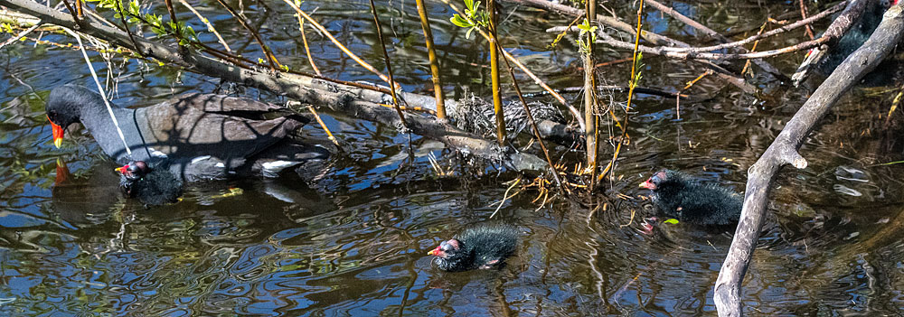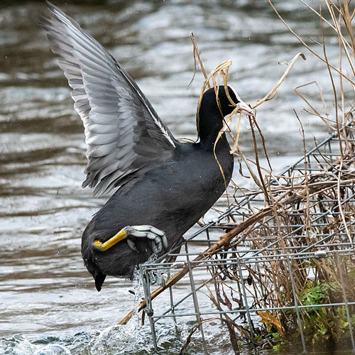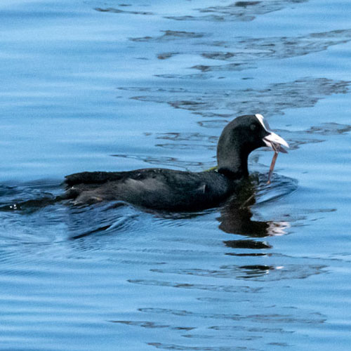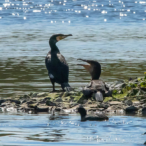Coot that was clutching nesting material in its beak. Then a Cormorant