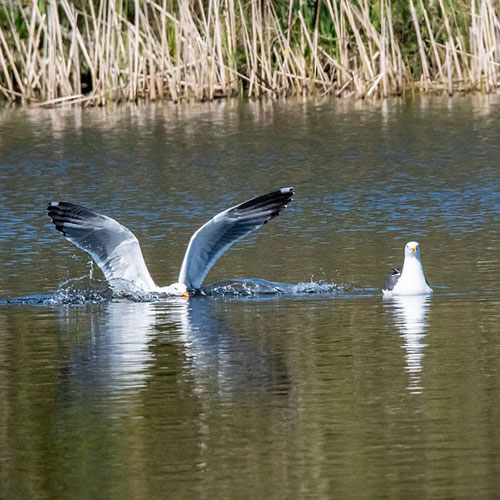 Lesser Black-backed Gulls flew in and landed near them. A little closer