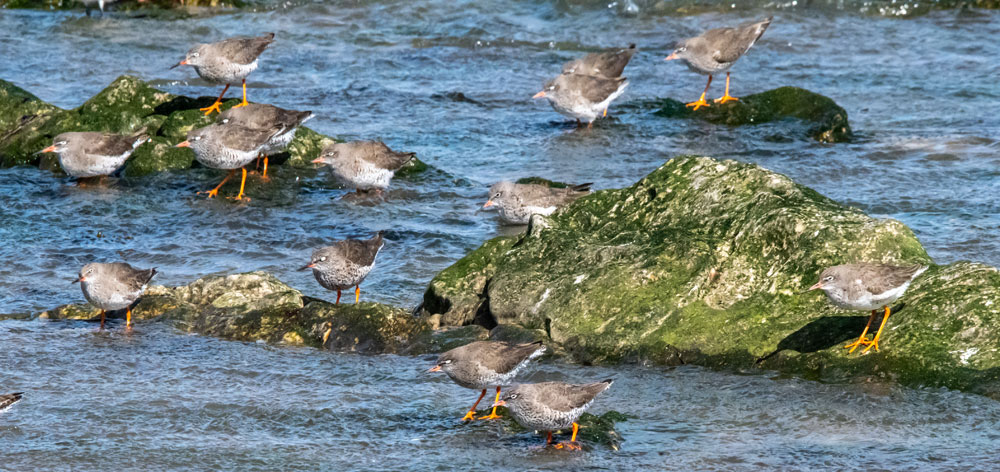 mouth, a group of at least ten Redshanks flew through the harbour mouth