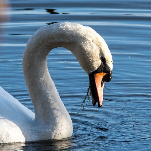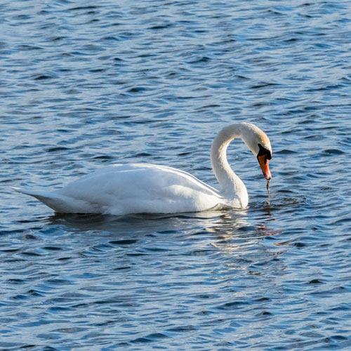 a large grassy mound. At the lochside a large Mute Swan was feeding on