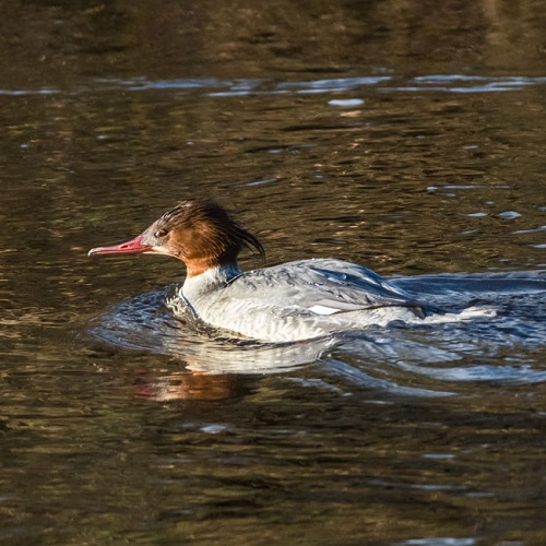 dabbled in bright sunlight. A Goosander drifted past, occasionally
