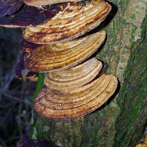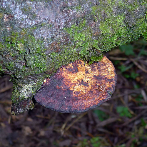 discovered an Alder Bracket fungus growing up the trunk of a dead tree.