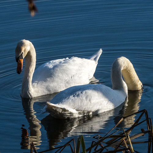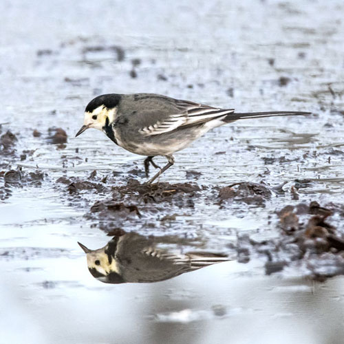 male White Wagtail. A large Mute Swan tired of waiting for folk to