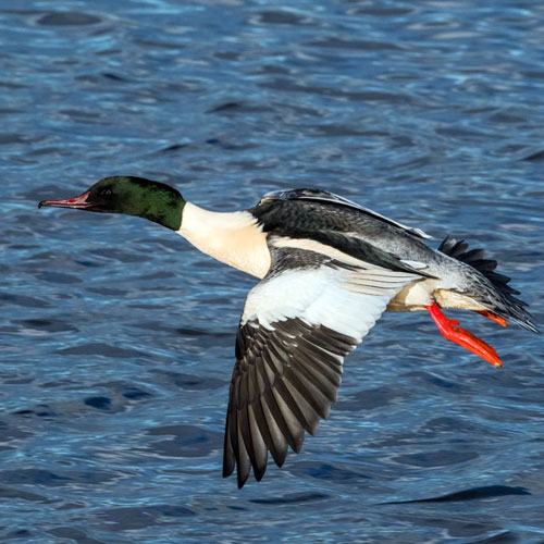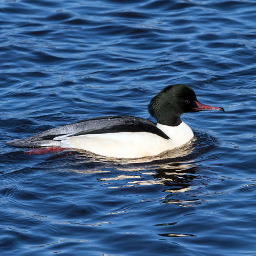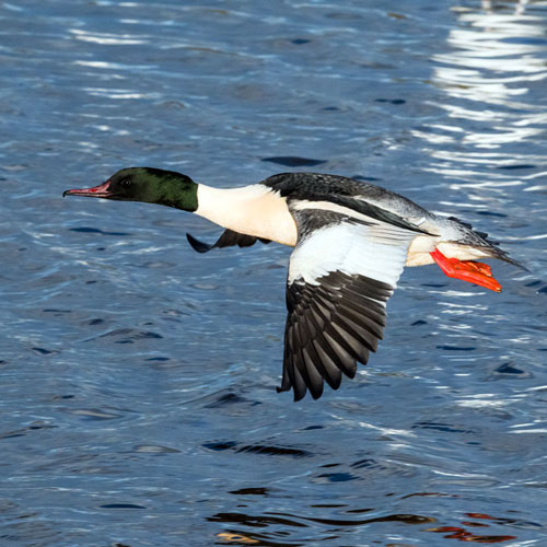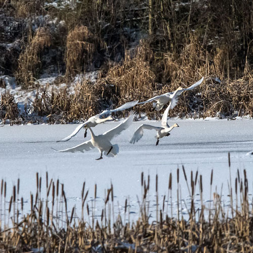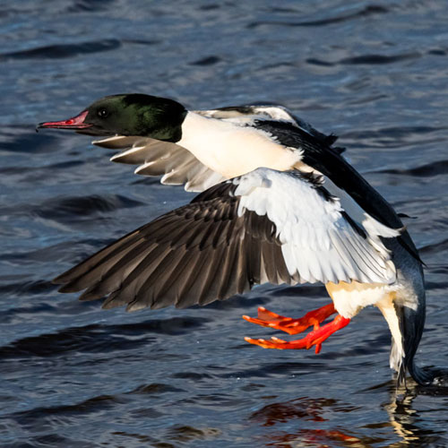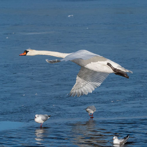 Some Mute Swans flew in, sending the ducks and Goosanders splashing