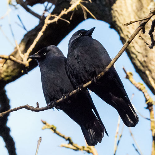 The black plumage of the Jackdaws contrasted beautifully with the white