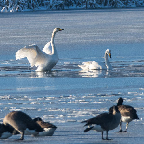 that wasn’t iced over. Prominent in the flock were Greylags -