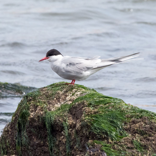 Black cap, grey upperparts and below.