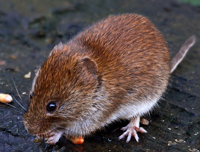 Lives in woodland, hedgerows and dense vegetation such as bracken. Its