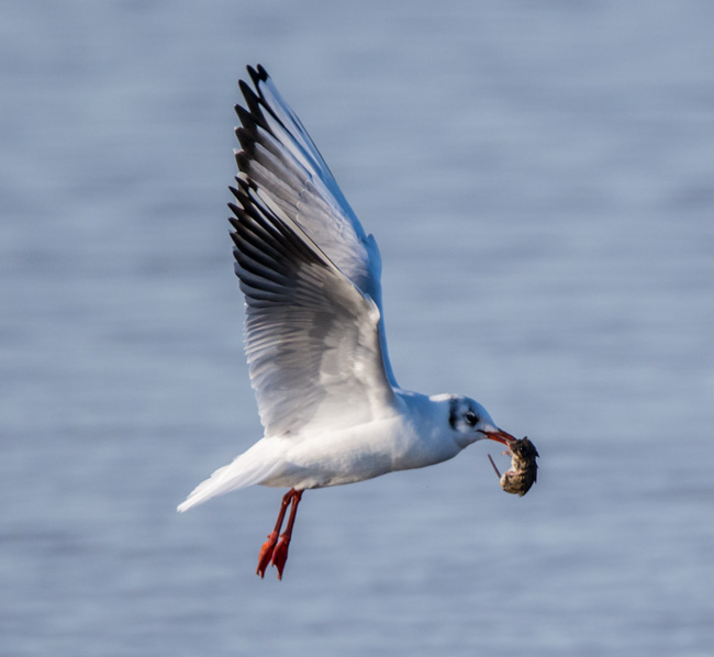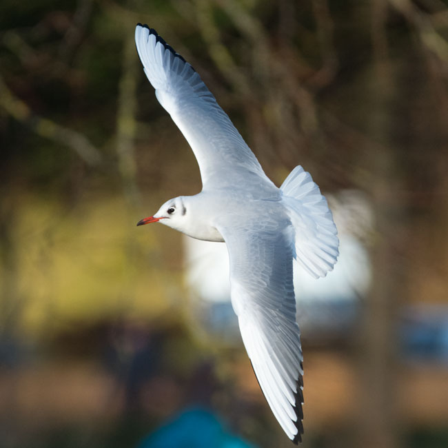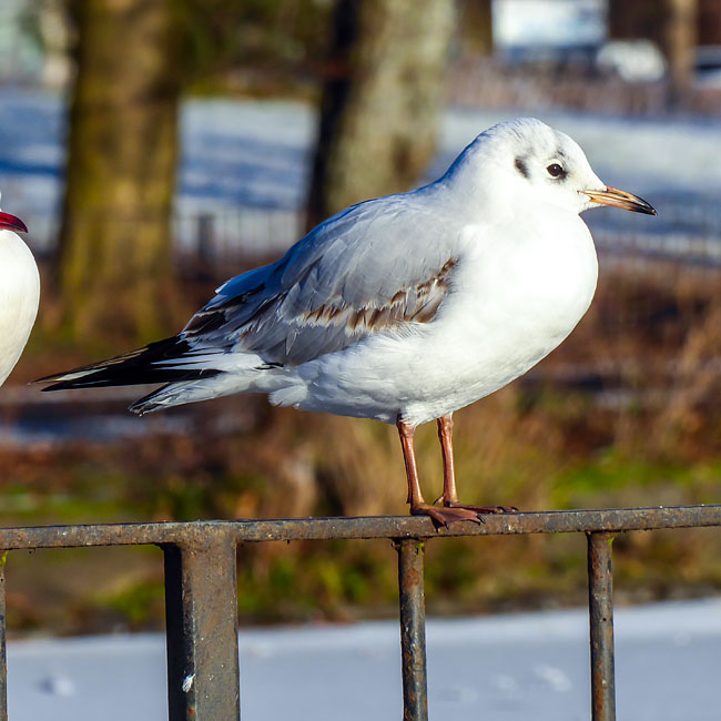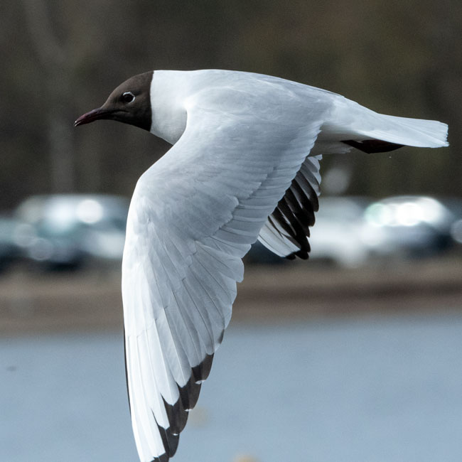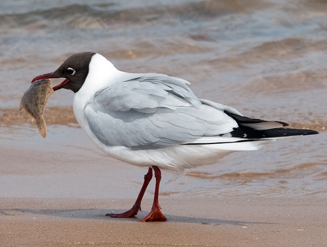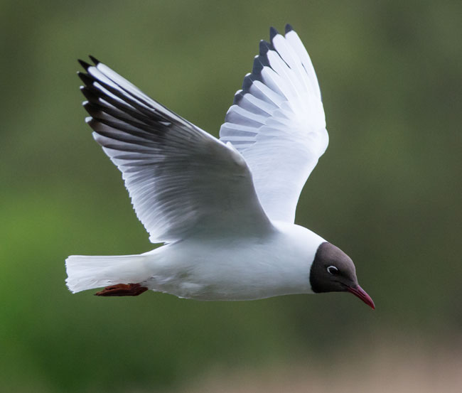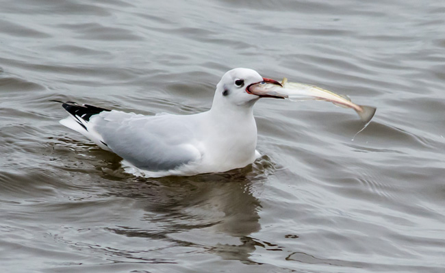 grey body, black tips to the primary wing feathers and