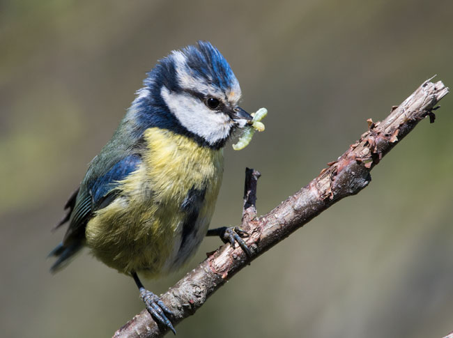 insects, especially caterpillars, seeds, pollen, nectar, sap and