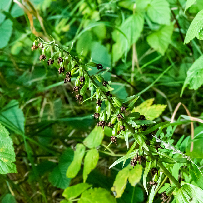 There can be as many as 100 flowers on the stem of this woodland orchid. Although its roots are often deeply infected