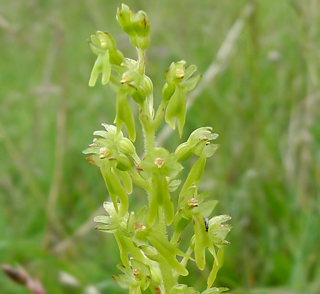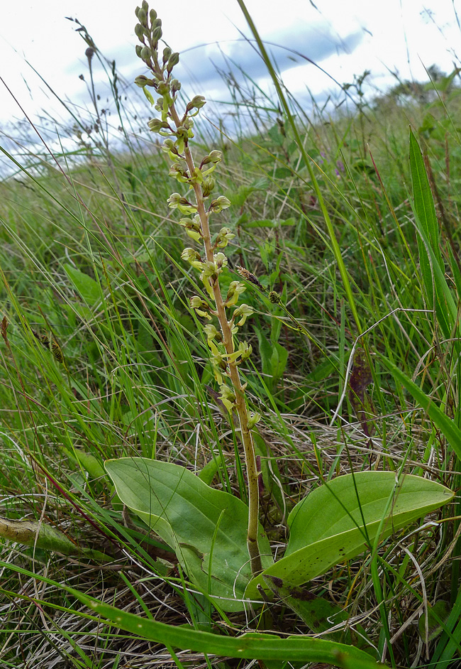 The name twayblade refers to the pair of oval leaves (two blades) near the base of the plant.