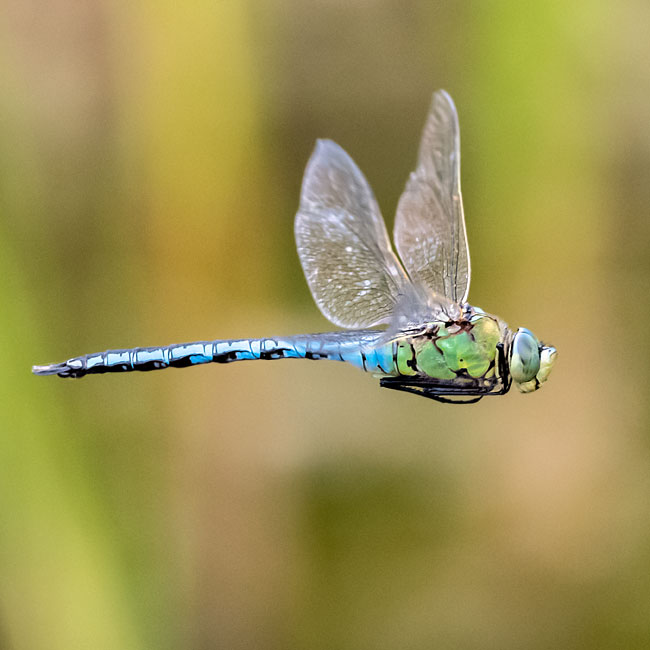 Butterflies, other Odonata and tadpoles; small prey is eaten while flying.