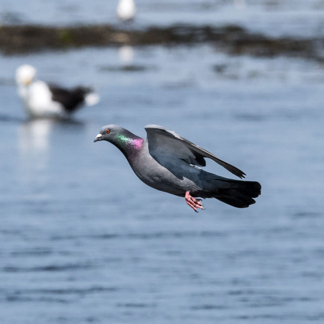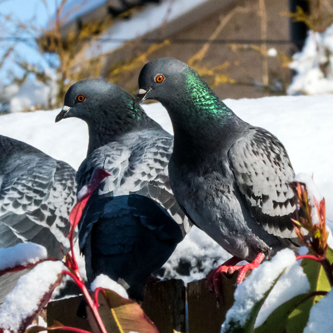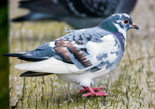The Feral Pigeon is descended from the Rock Dove,and can have similar plumage, though there are also many
