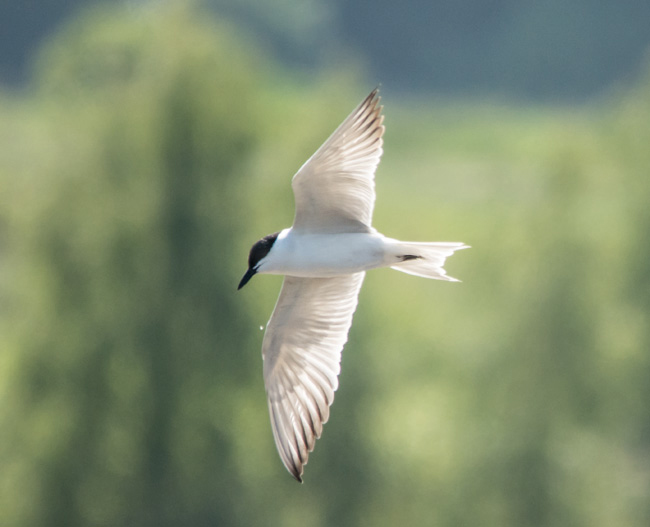 are distinctive. The summer adult has grey upperparts, white