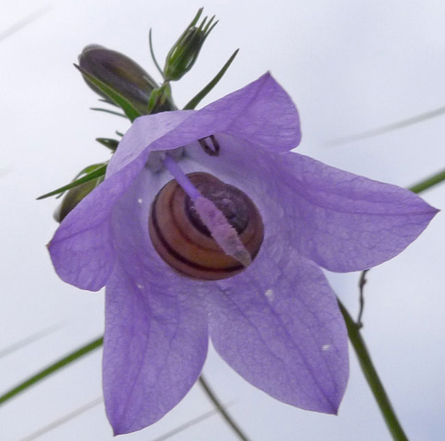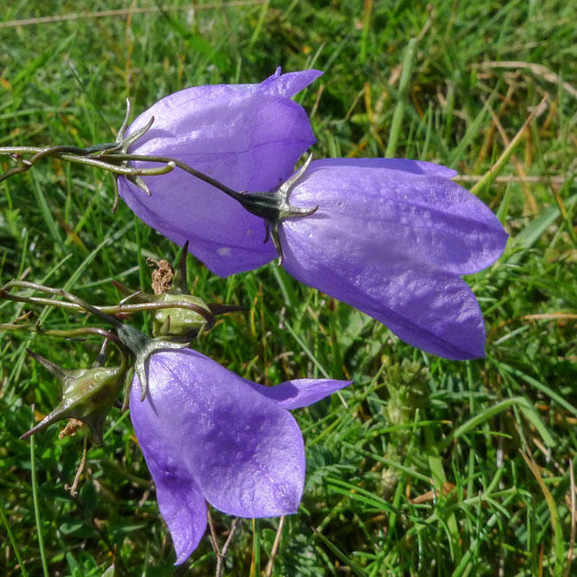 is known in Scotland as a Bluebell. In fact, the Harebell is known as Scots Bluebell, and both Bluebell and Harebell can be seen in Scotland. Plants with White or Pink flowers occur.