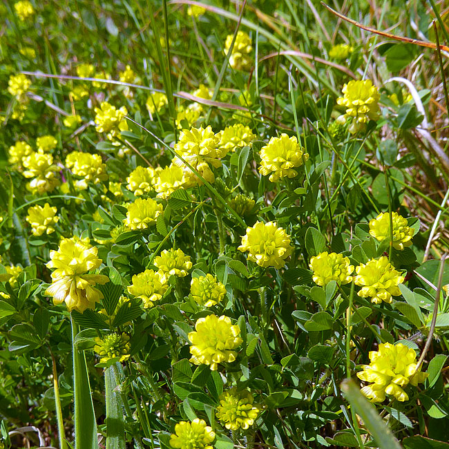 The species name campestre means "of the fields". Hop trefoil is