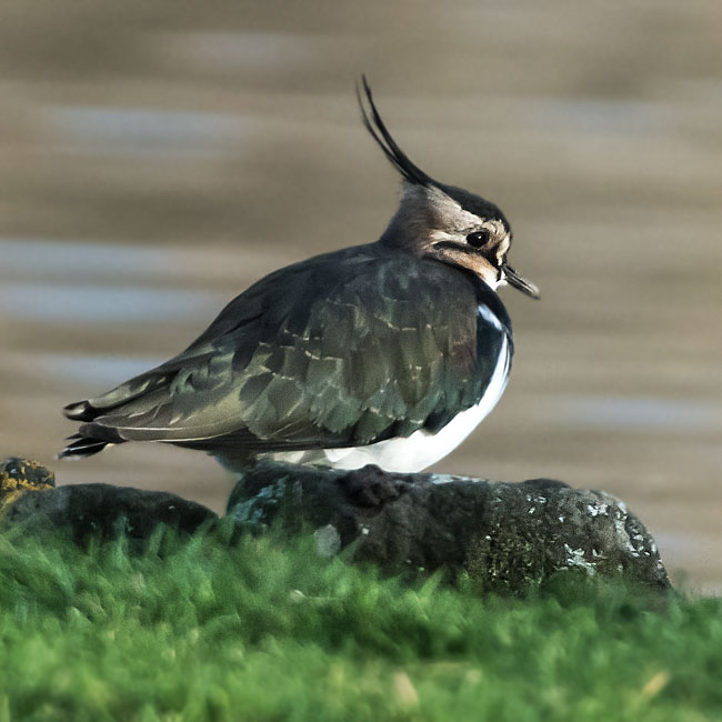 Greenish-black on crown and crest. Whitish on the side of